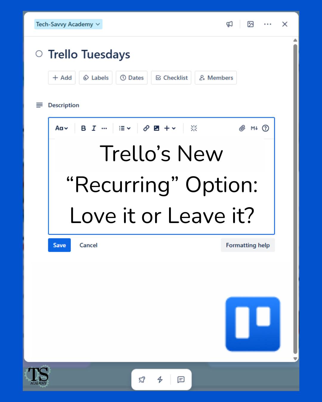 Trello Tuesday October 21, 2025 Trello Tuesdays Your Weekly Trello Tips and Tricks Trello Tip of the Week Trello quietly rolled out a Recurring dropdown inside the due date/start date picker. It lets you set tasks to repeat (daily, weekly, specific day of month, etc.) without creating a new card each time. That’s different from the old Card Repeater Power-Up, which duplicates a card for each recurrence. 💡 Featured tutorial Trello’s New Recurring Dropdown vs. Card Repeater vs. AutomationsIn...
